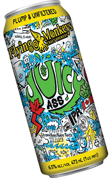 This award-winning American IPA moshes bright, fruity notes, dank hoppy bitterness, and fresh verdant resins with sticky malts for a softly carbonated, unfiltered flavour. From the busy minds and happy hands of the Flying Monkeys comes Juicy Ass IPA.