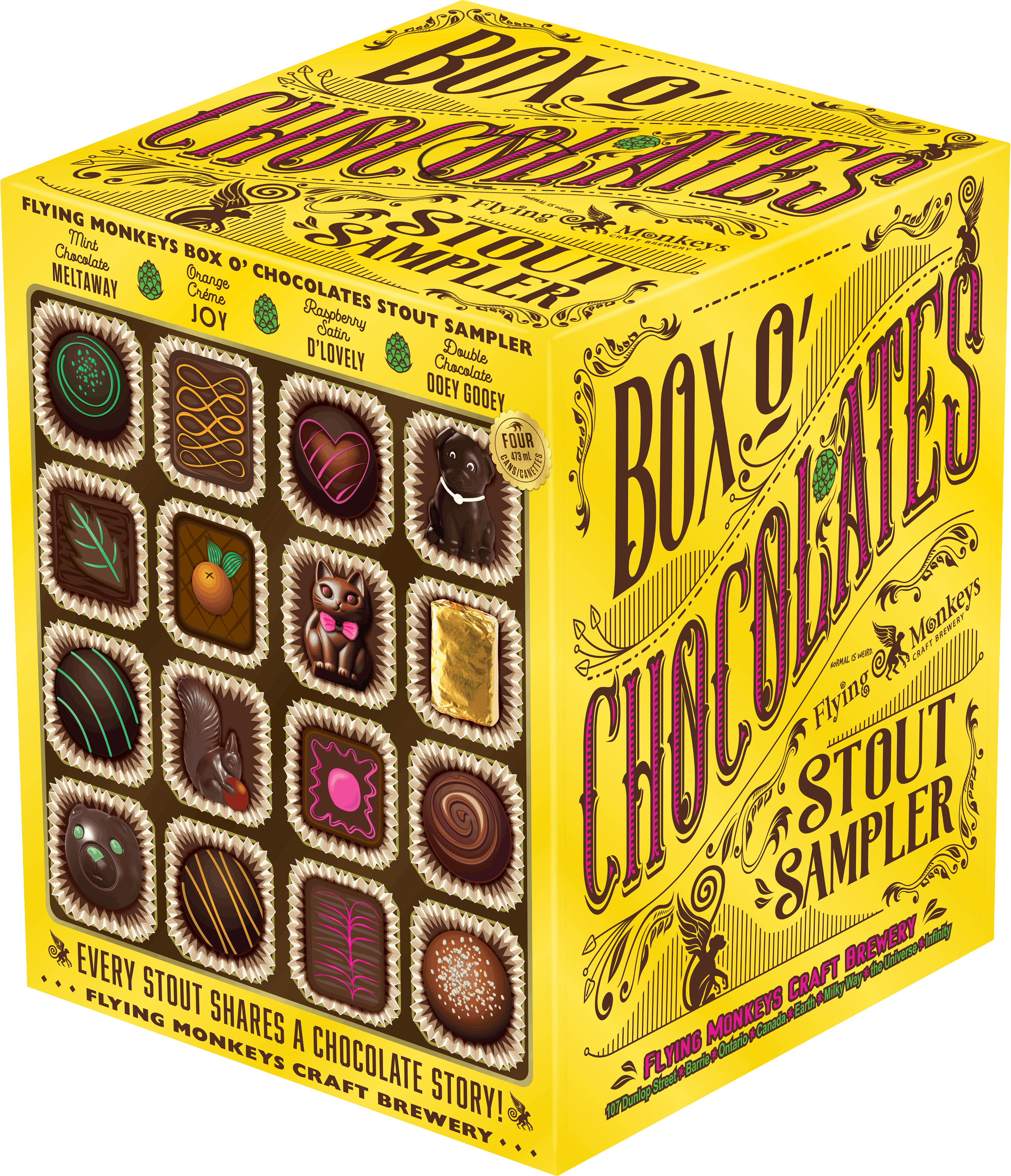 17.8% - A swell sampler of four dark, delicious stouts made with the magic of real chocolate and the wonder of the Flying Monkeys