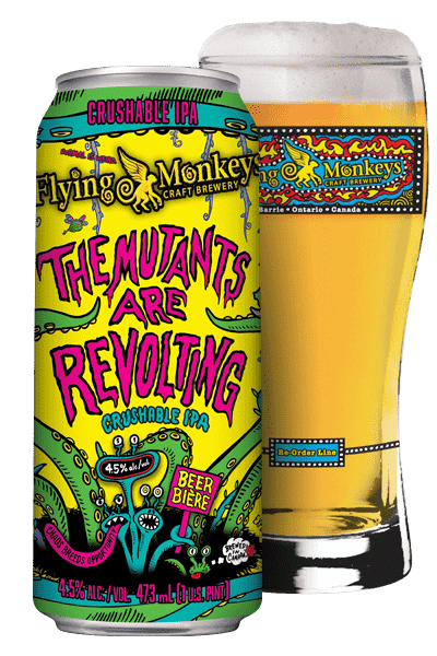 As exciting and interesting the Flying Monkeys’ crazy, 10% ABV beers can be, sometimes you’re in the mood to enjoy a few beers and still maintain some measure of sobriety. Arise, ye Mutants! From fresh fermenters come animated golems of morphing alpha acids merging a thoroughly crushable 4.5% abv with the classic crispness of an old school west coast IPA.