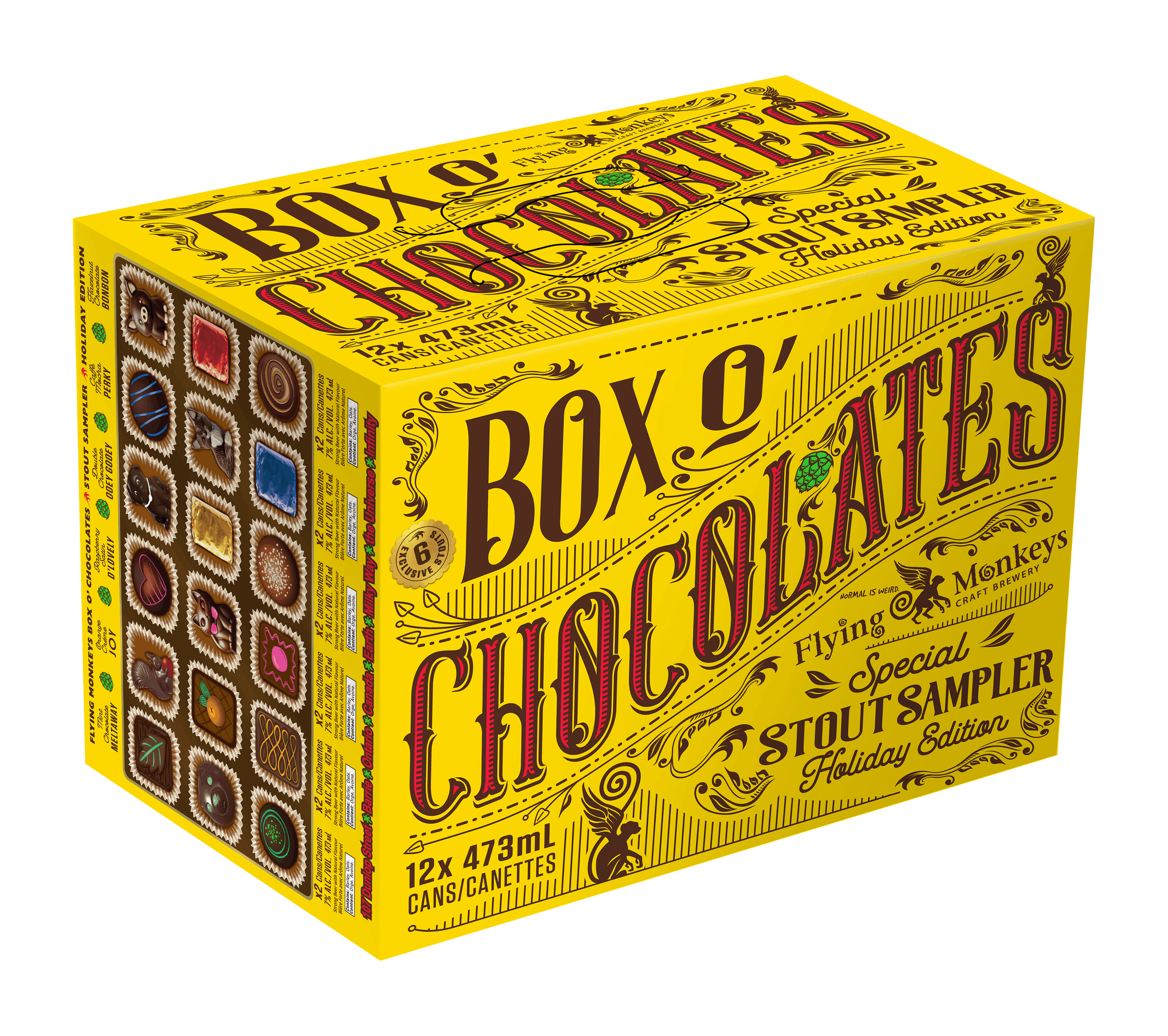 17.8% - A swell, Holiday Edition sampler of twelve dark, delicious stouts made with the magic of real chocolate and the wonder of the Flying Monkeys